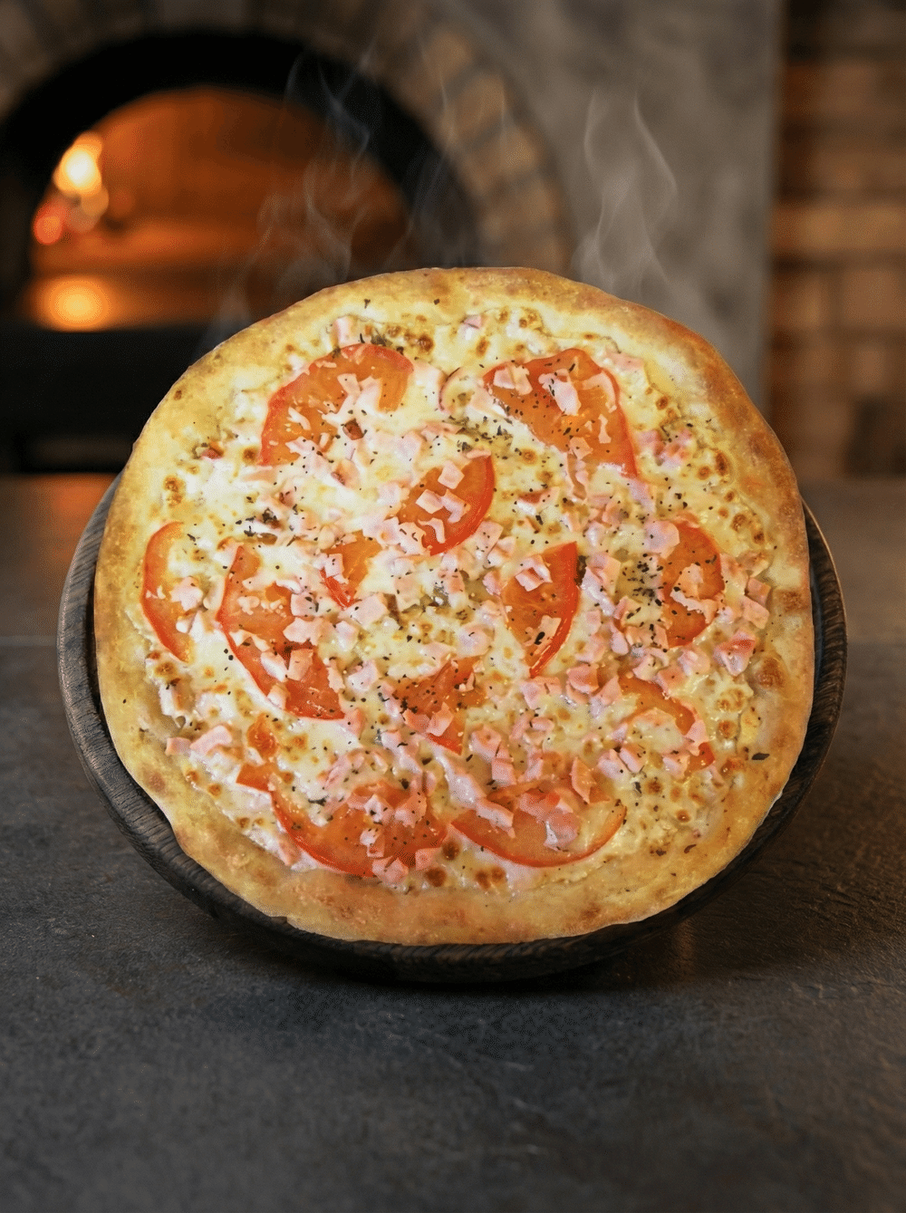 Белый сливочный соус, моцарелла, филе куриное, свежие томаты