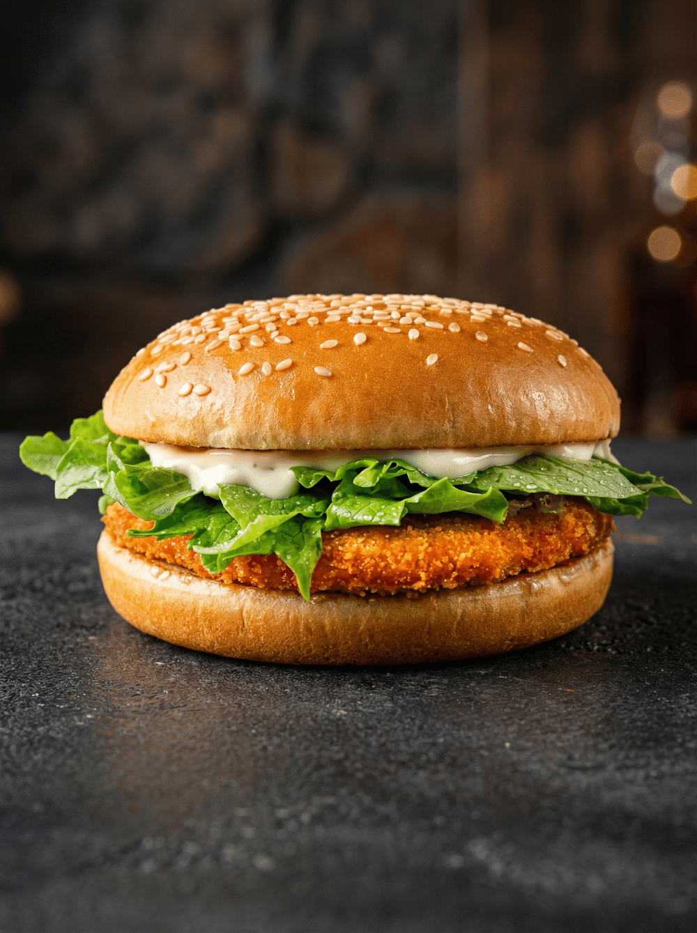 Булочка, котлета куриная, салат айсберг, томат, соус